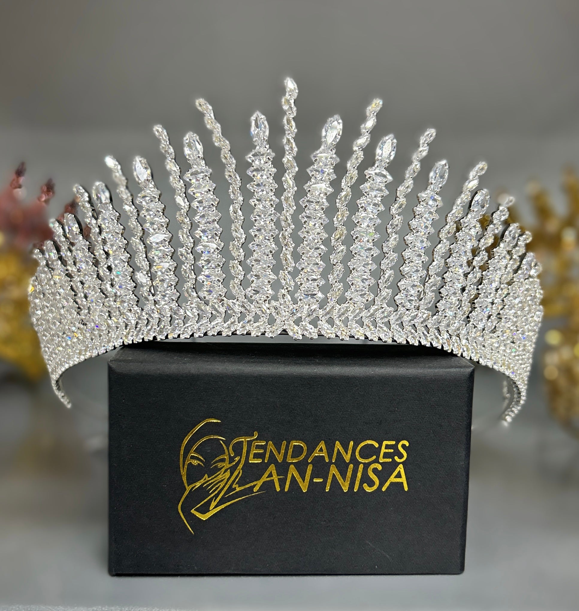 Sublimez votre élégance nuptiale avec ce diadème artisanal, conçu avec soin pour la mariée moderne. Composé d'un luxueux mélange de cristaux scintillants et de zircones scintillantes, ce bijou exquis rayonne d'une beauté intemporelle. Chaque élément est délicatement agencé à la main, garantissant ainsi un accessoire unique qui apportera une touche royale à votre grand jour.